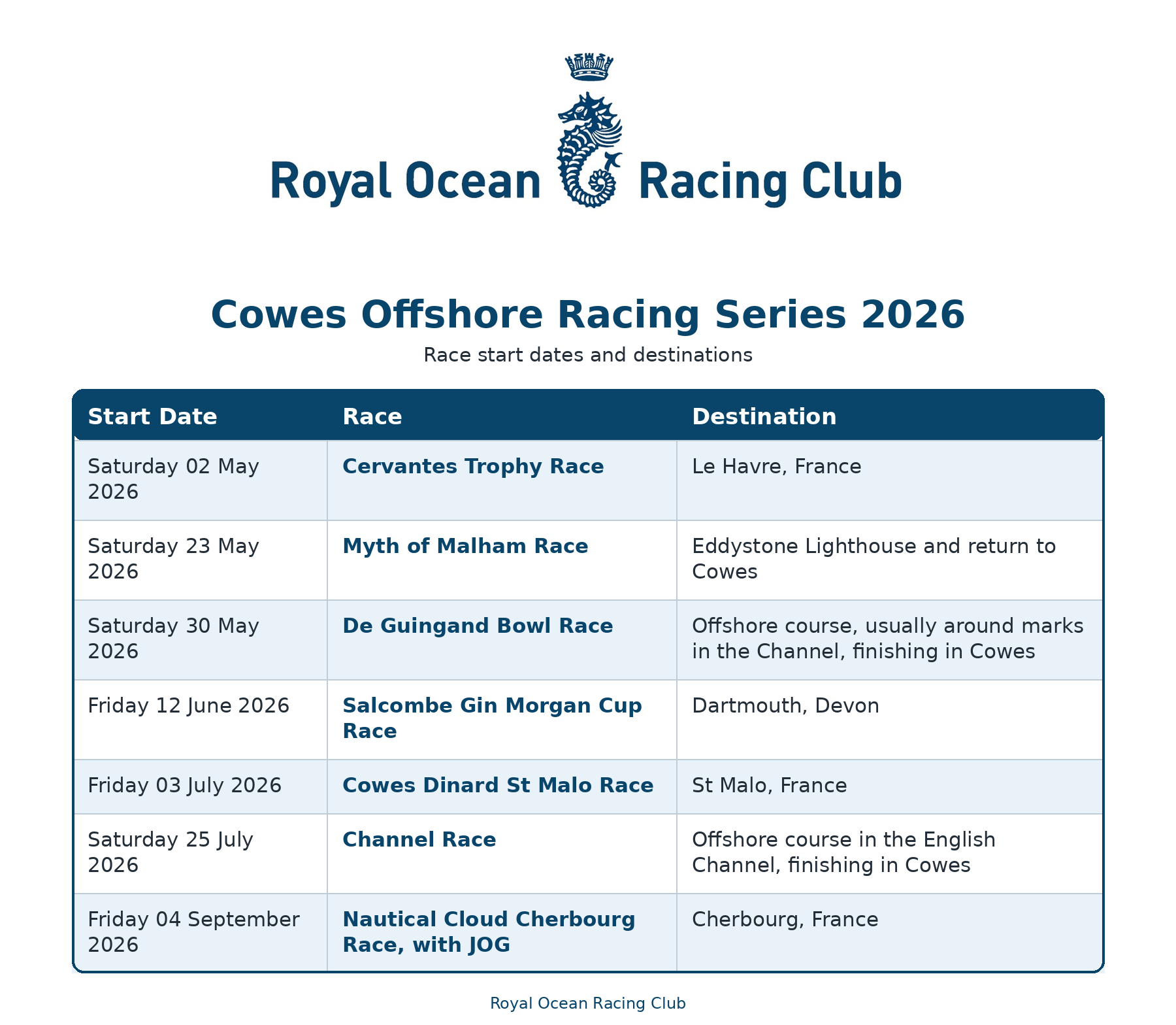 The RORC Cowes Offshore Series brings together a season of accessible, high quality RORC racing from the Solent, giving crews the chance to build experience, test themselves offshore and take on some of the most rewarding races in the RORC calendar. The seven race series of races all start from Cowes with the best five to count.