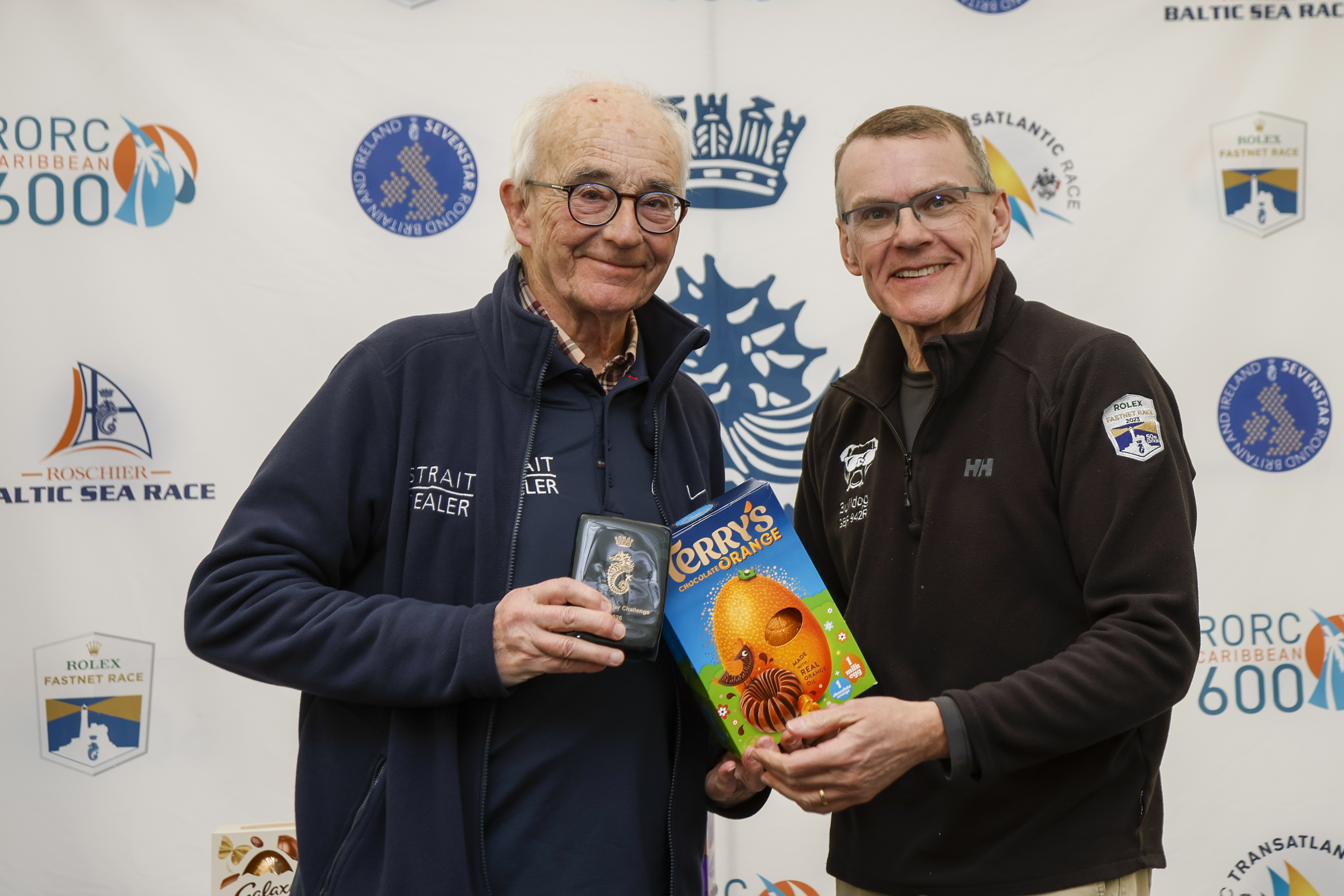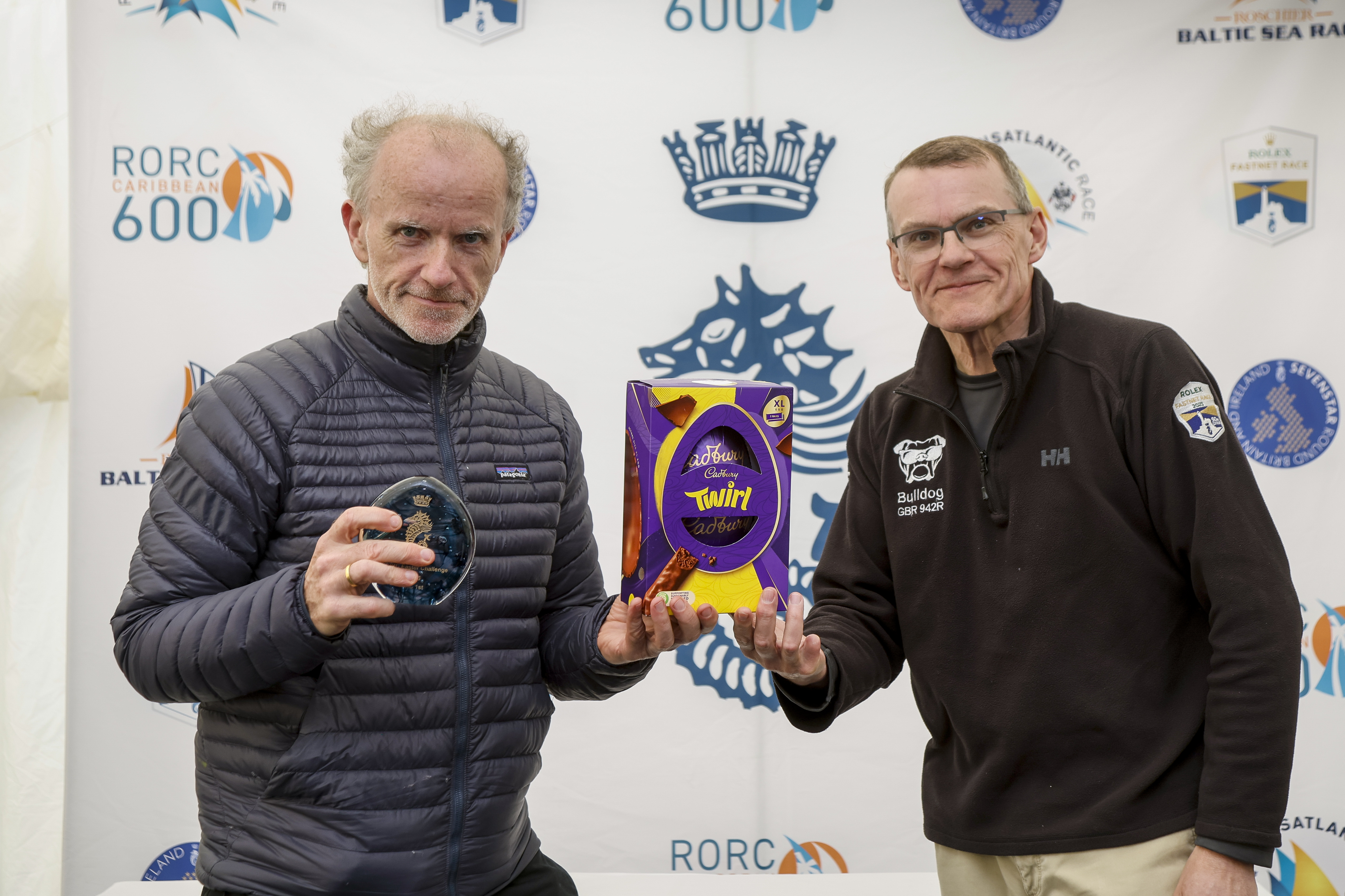 The RORC Easter Challenge Prize Giving was held at the RORC Cowes Clubhouse. RORC Racing Manager Chris Jackson thanked the RORC team and all the competitors. RORC Vice Commodore Derek Shakespeare, who had been racing his J/122 Bulldog, presented class winners with their prizes and performed the traditional Easter Toss to competitors.